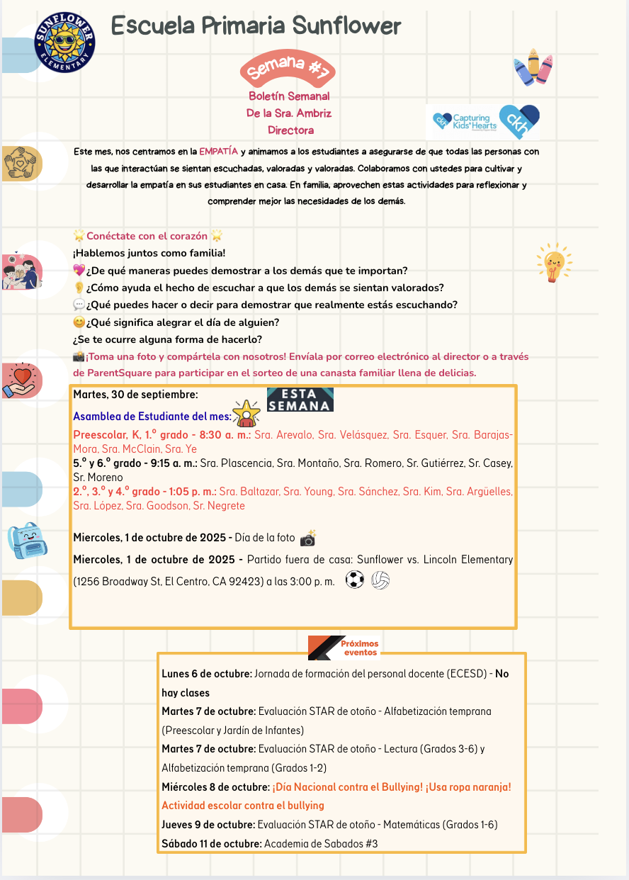 Sunflower Elementary Weekly Newsletter Week #7