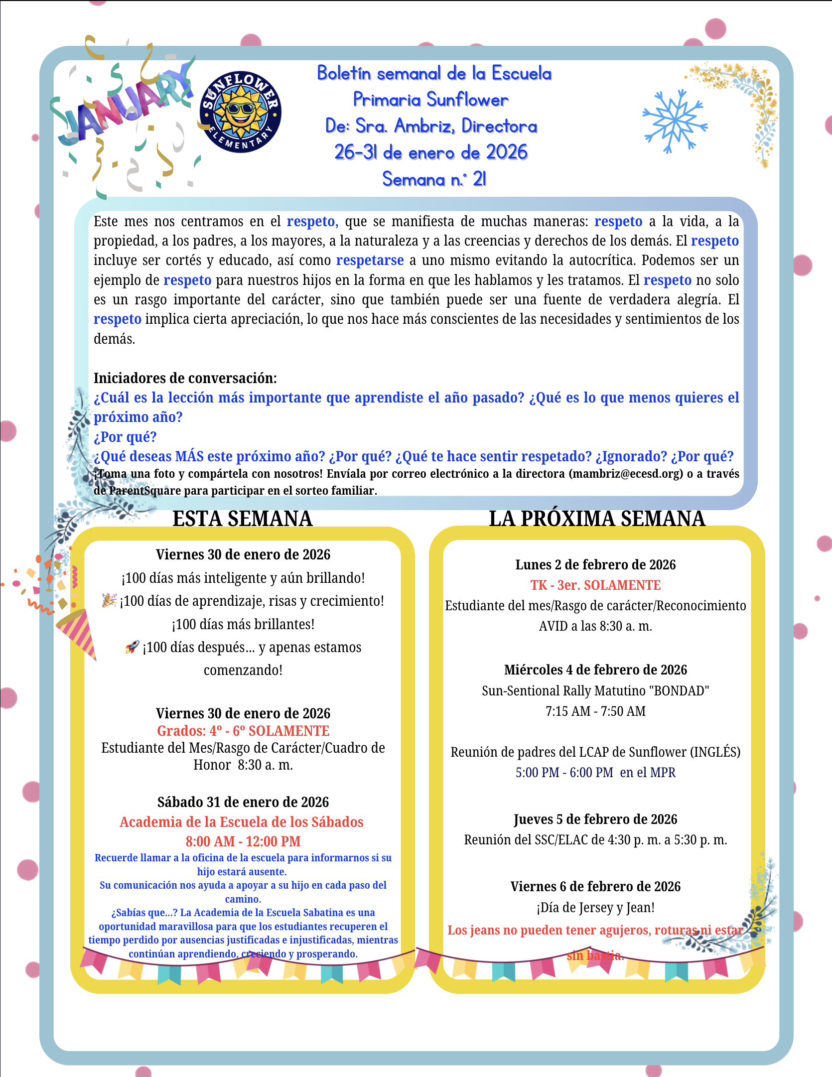 Sunflower Newsletter Week 21
